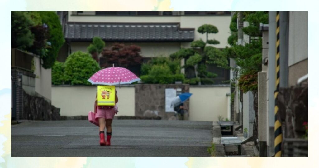 ここでは、小学生の雨の日の通学を想定しながら考えてみましょう。